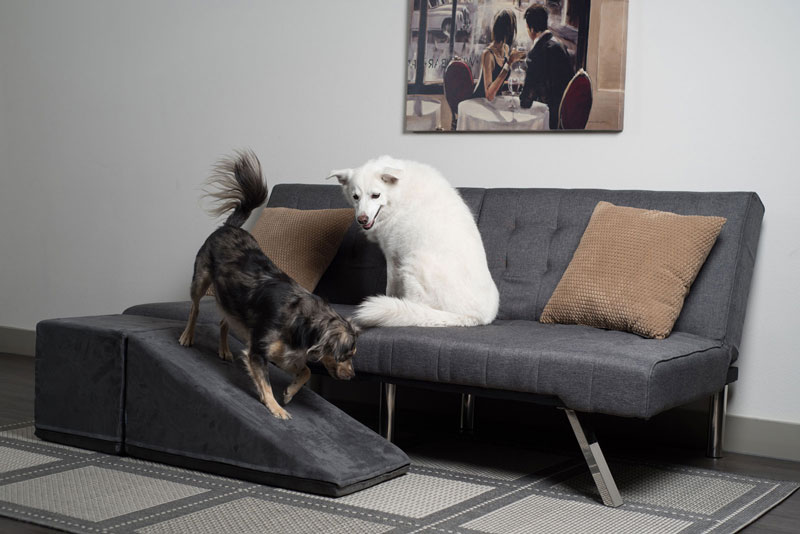 Our foam dog ramps are exactly what your pet needs. Does your pet pooch have trouble getting up on the bed or couch? Do you want your senior or arthritic dog to get up and down the couch without straining its joints? Try our range of dog stairs and dog ramps. Our products are designed to increase your pet’s independence without affecting their overall joint health. Whether it’s snuggling beside you on the bed or jumping on to your lap, pets love to spend time with you. But repeated jumping can be stressful for their joints, hip, and back. Our dog stairs and ramps help them hop right up with you with ease!